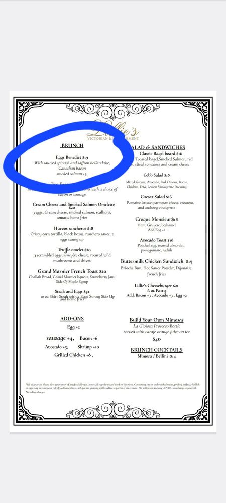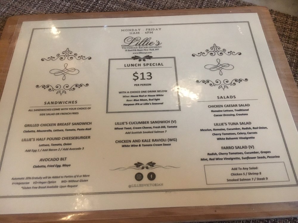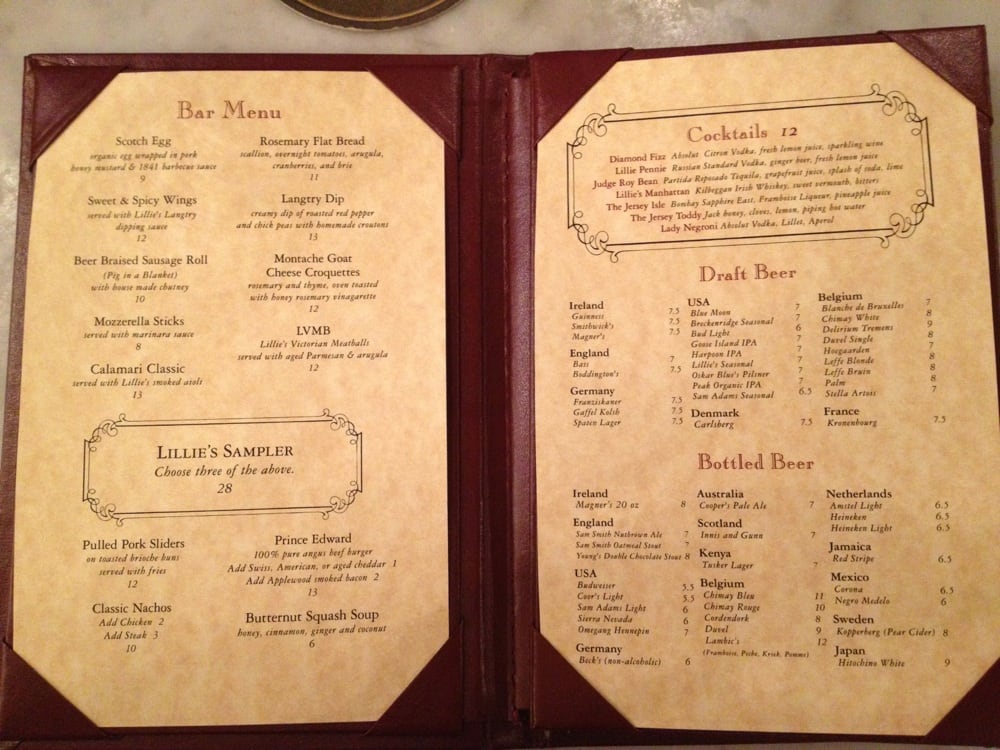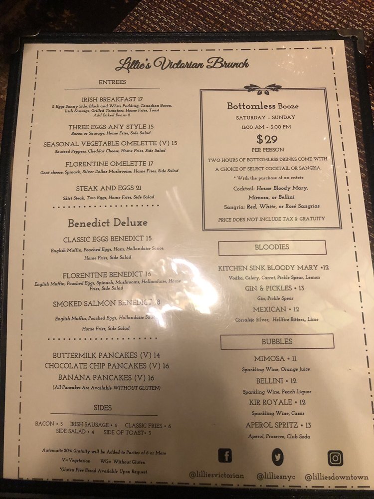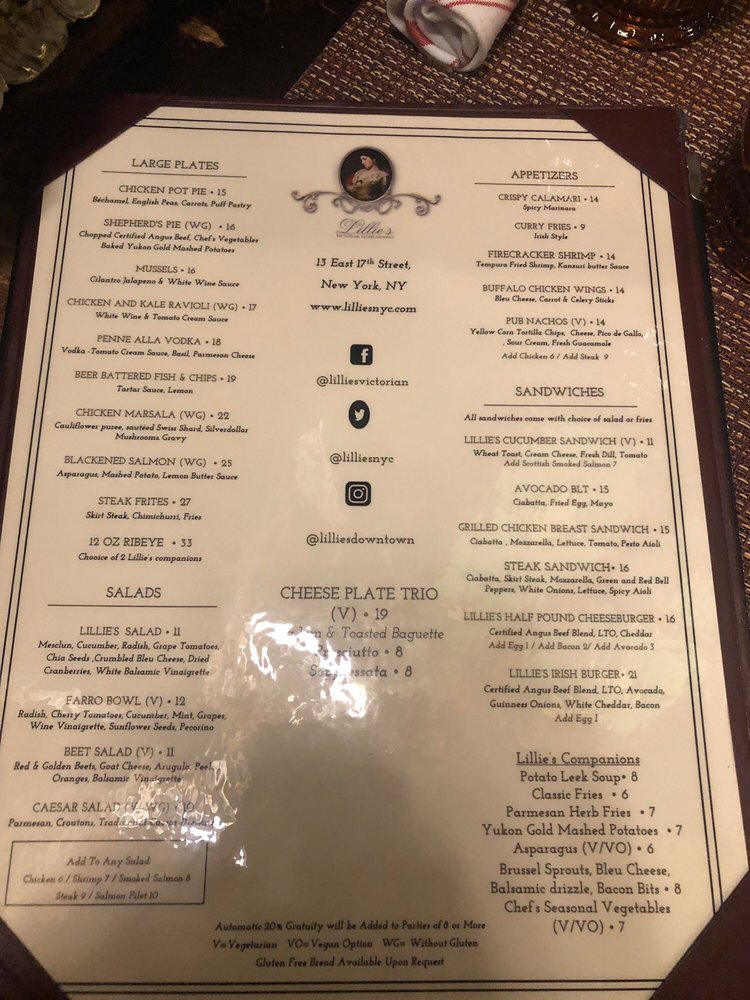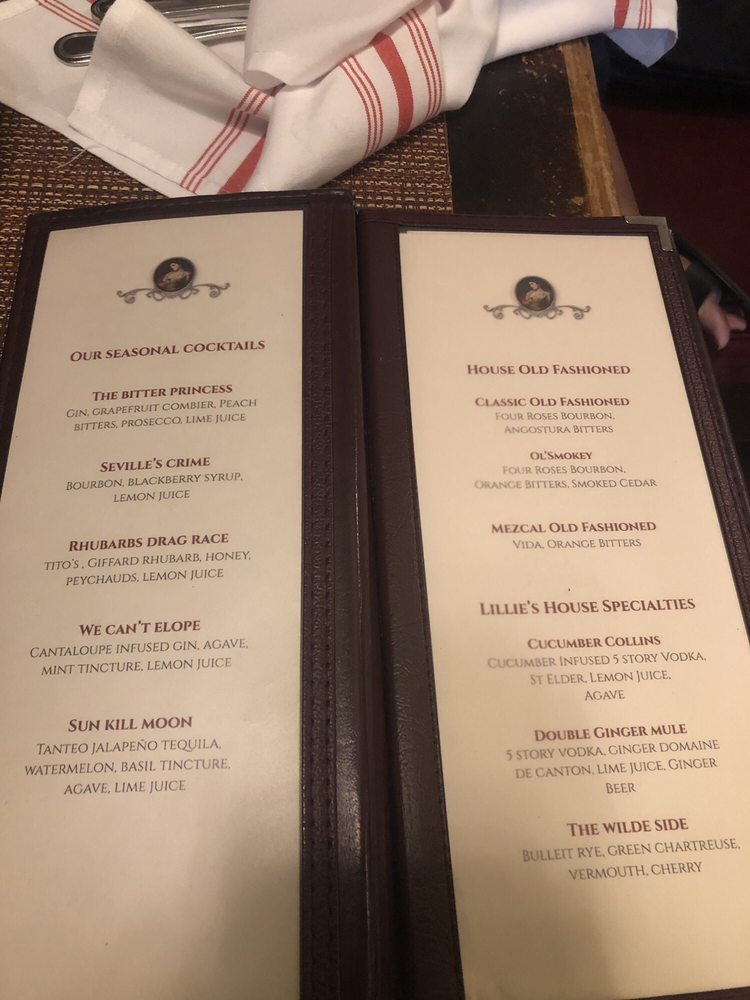 Lillie's Victorian Establishment Menu (Update 2025)